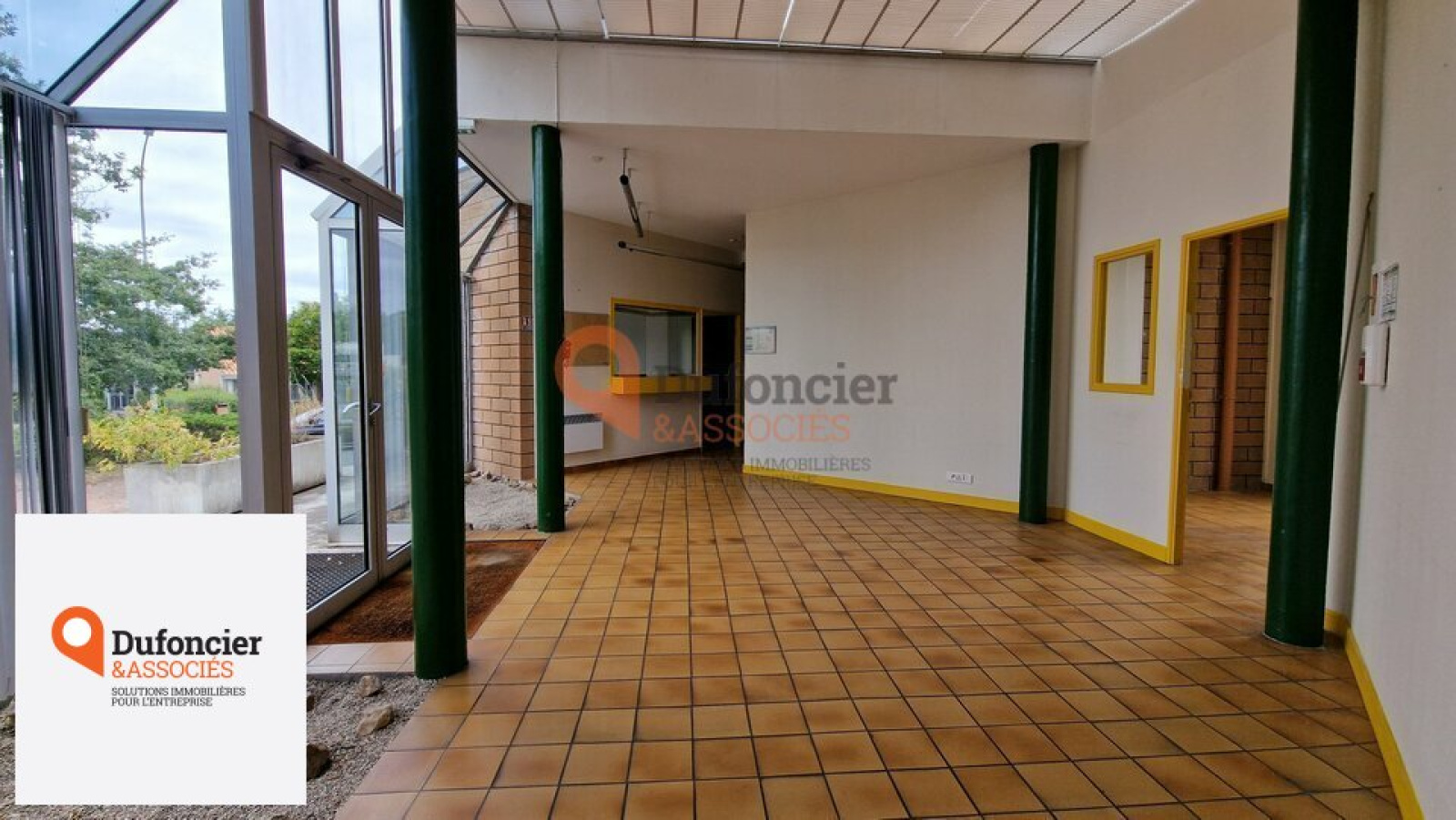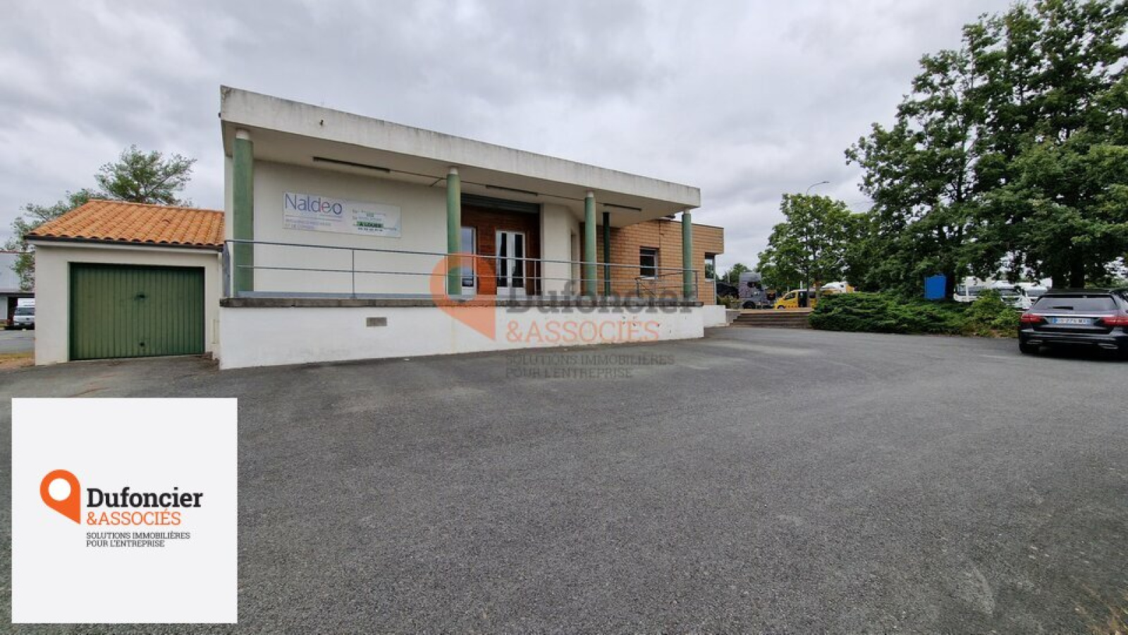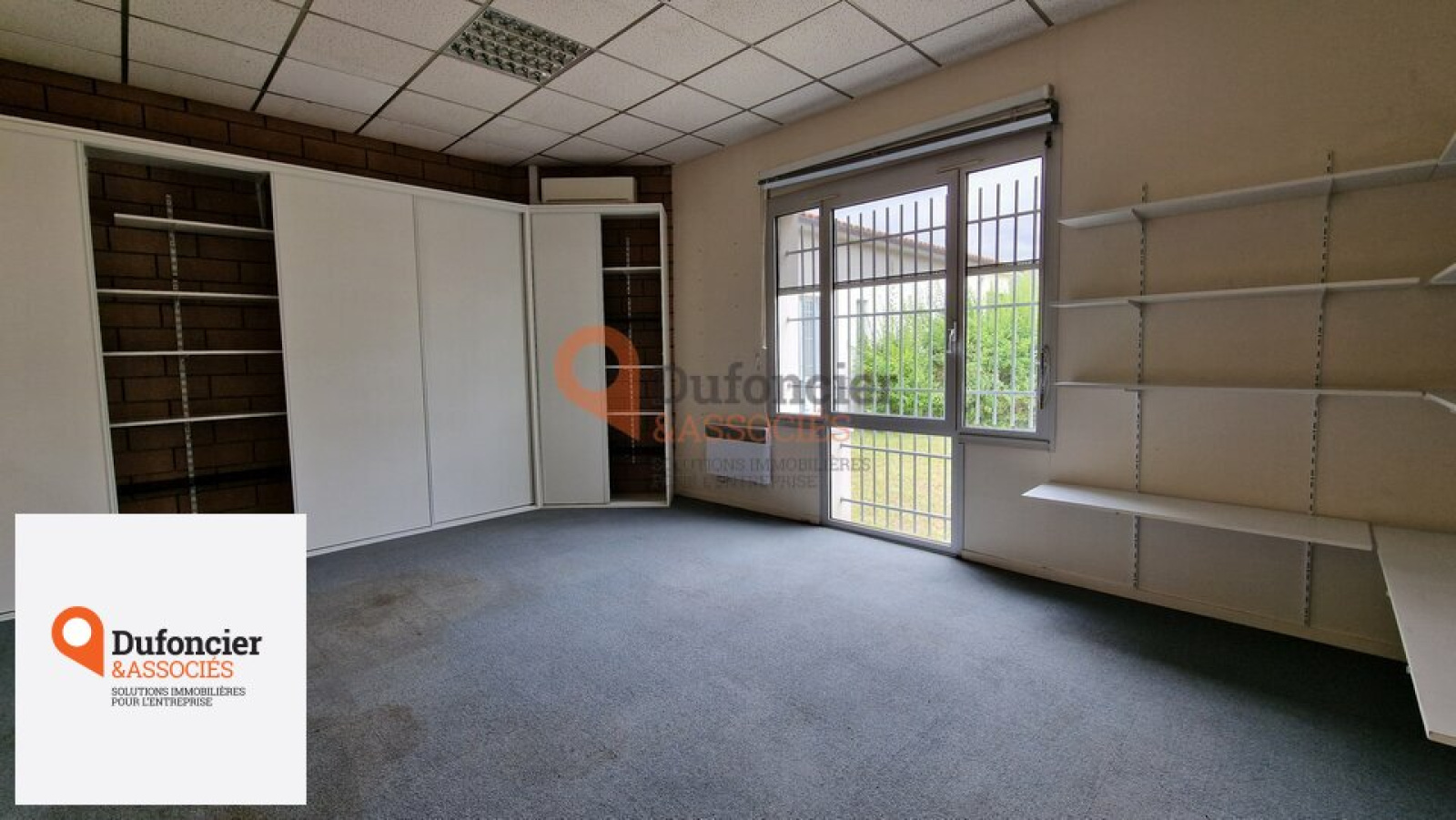 Local composé d'un accueil, bureaux fermés et salle de réunion, garage pour l'entreposage de matériel ou sécurisation de véhicules.