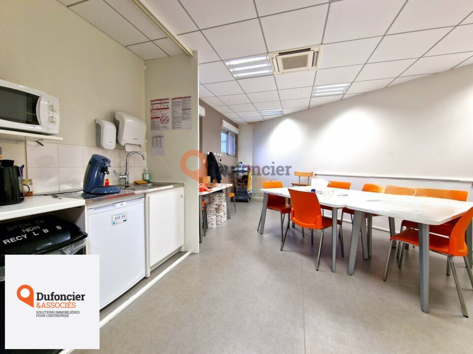 Aménagé avec soin, il offre une surface totale de 162m² comprenant un bel espace d'accueil sur l'entrée, plusieurs bureaux individuels en cloisons mobiles allant de 11m² à 18m², une grande salle de pause avec kitchenette.