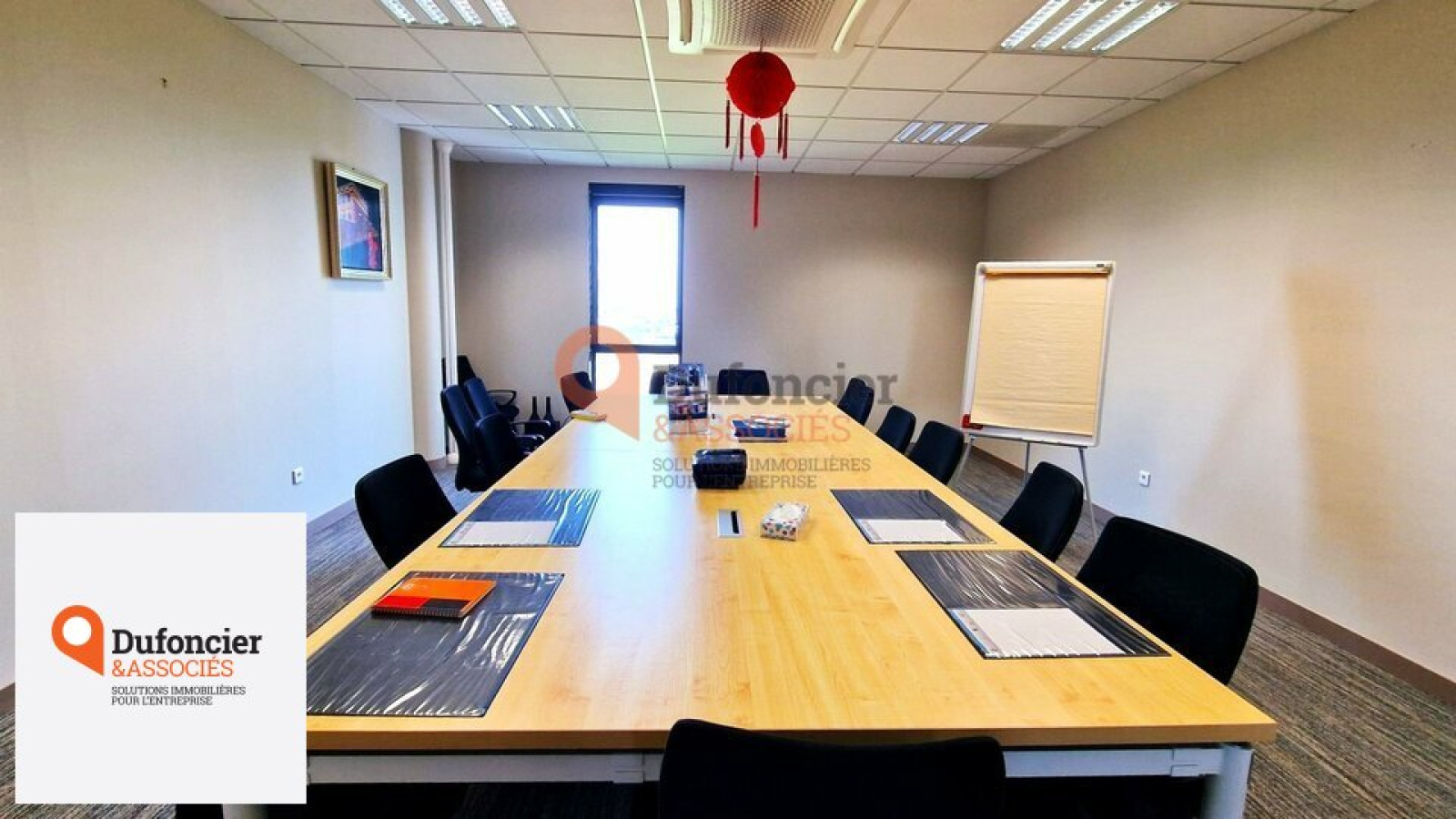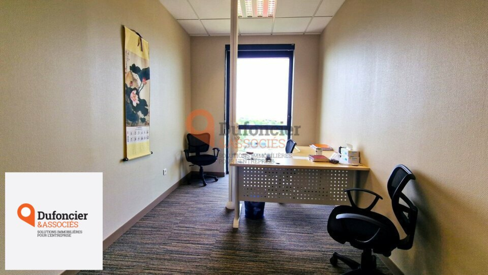 Bureaux livrés aménagés, composés d'un open-space central autour duquel sont disposés des bureaux individuels, bureau de direction, salle de réunion et salle de pause.