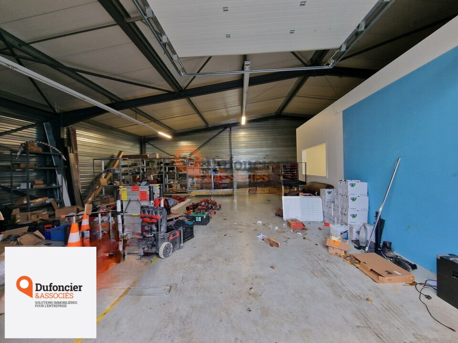 - Un entrepôt pour le stockage de vos marchandises, en bardage isolé double peau, une porte sectionnelle motorisée