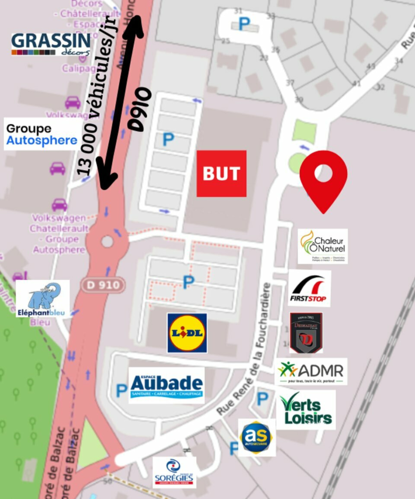 Proche de l'échangeur A10 et de la D910 reliant Bordeaux à Paris, ce terrain bénéficie d'une petite visibilité depuis l'axe majeur.