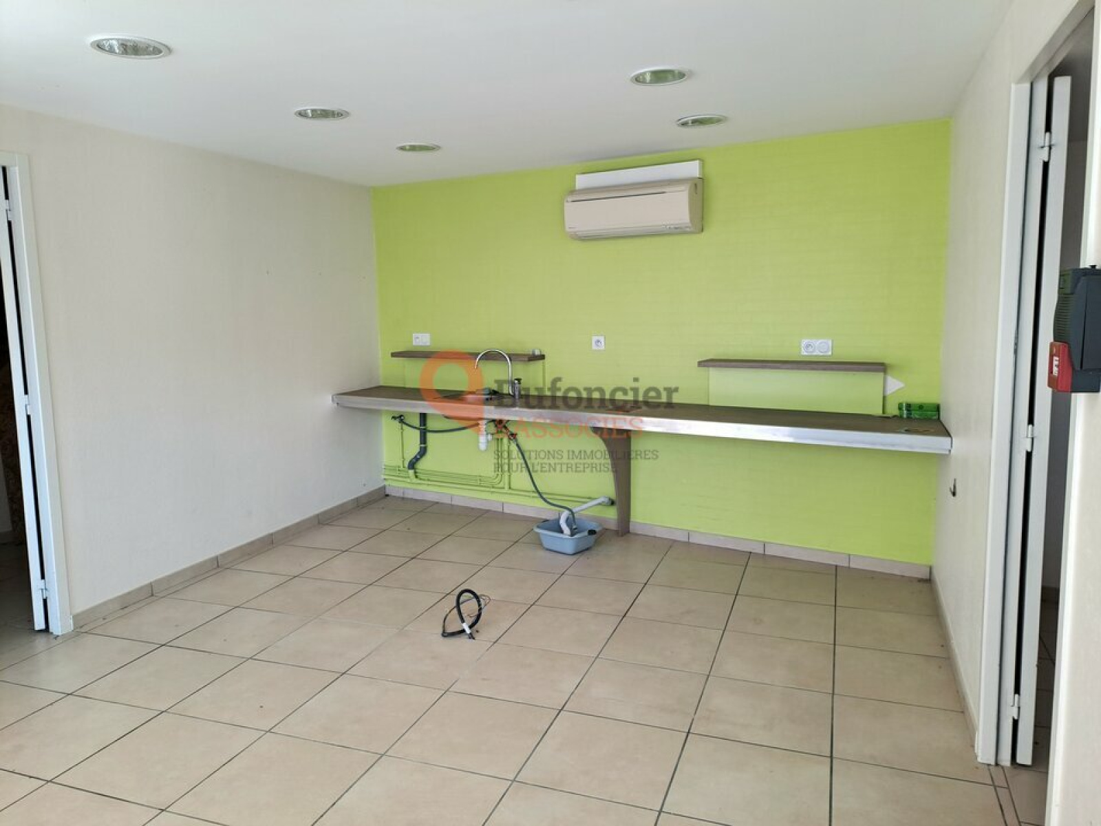 Le local offre une surface totale de 110m², dont 80m² environ en surface de vente, et dispose d'une salle d'examen, un sanitaire avec lavabo, et en R+1 un espace bureaux sur 30m² environ.